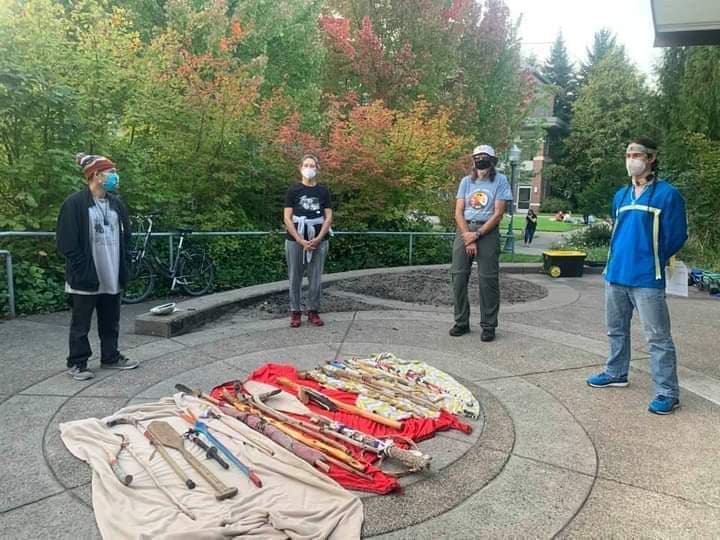 Illahee Spirit Runners went and spent time with the prayer staves from Peace And Dignity Journeys. I sang the wolf song. I prayed for every staff and all the tribes and people involved with each one. I spoke about the environment, the physical manifestations of our prayer, how colonists are fearful of it and trying to build a wall at their imaginary border that will only delay us from our inevitable unification the need for ceremony for the resistance, covid and its connections to the animal world and addressing the imbalances the world is going thru. I talked about colonialism and its effects on wildlife. The need for indigenous led wildlife conservation. I spoke about protecting wolves as a culturally significant animal. I spoke about fire, this years sacred prayer for fire, the wildfires. The fires in the cities. I spoke about the #RightfulStewards being in control over fire prevention. Fire is a purifier. Fire is sacred. Fire is a necessary part of the natural world. Just like I said about pow wow the covid canceled our plans so we would have to focus on the imbalance and how to gain restoration and healing. We have been asked to keep a prayer for fire continuing. Let us keep the unification of the eagle and the condor in our minds and in our prayers. I was happy i was able to attend to this prayer and fulfill my obligations to it. It helped me to remember how I’ve been a living part of this prophecy.